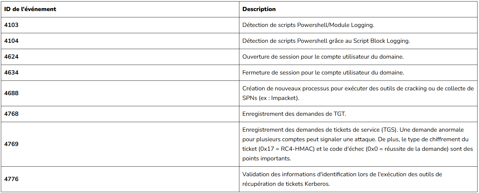 • ID d’événements Windows 4769